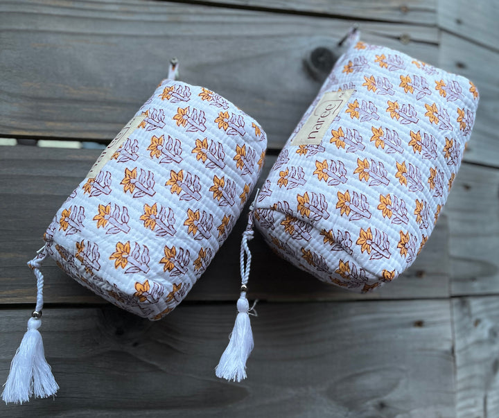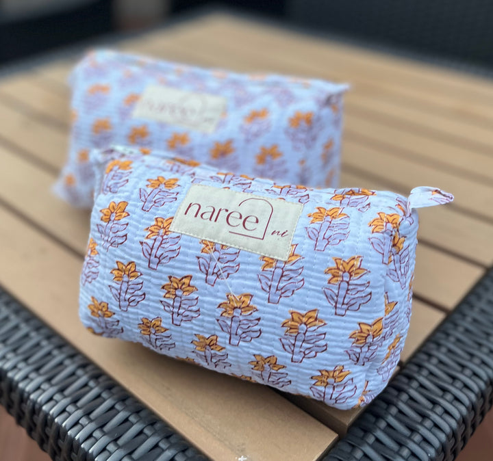 Discover our handcrafted, block-printed cosmetic wash bag pouch—a stylish and functional essential for every traveler, makeup lover, and organizer! Lovingly crafted by our talented artisans in India,
