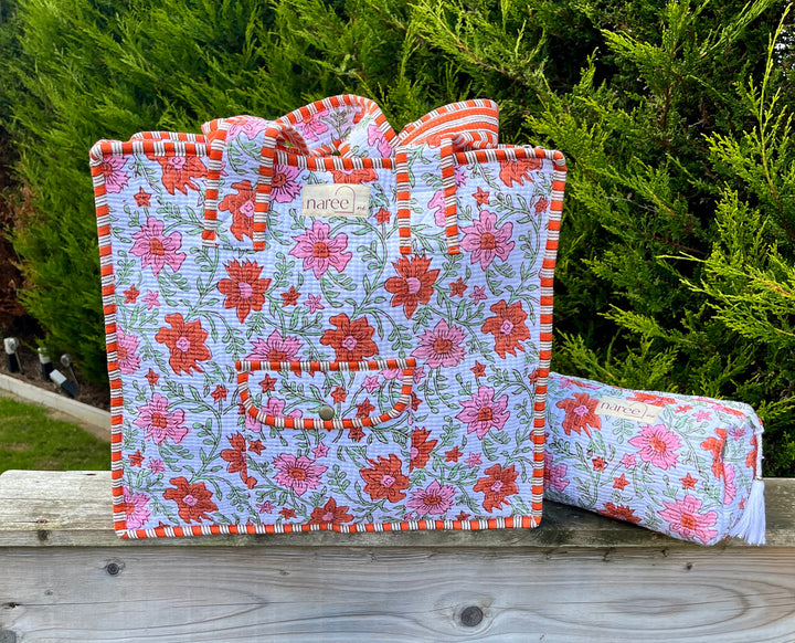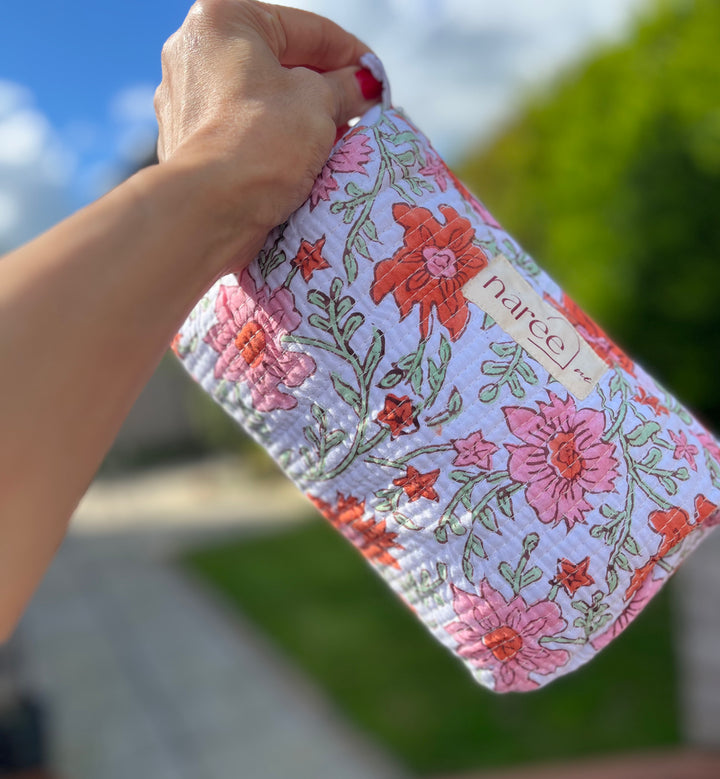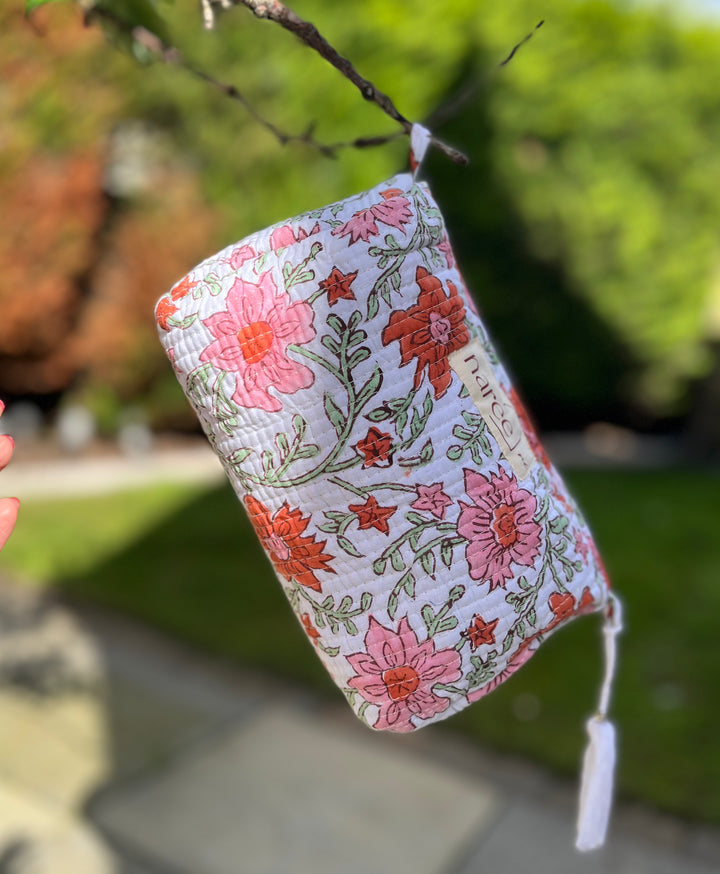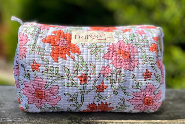 Meet our handcrafted, block-printed cosmetic wash bag pouch—your new everyday essential!