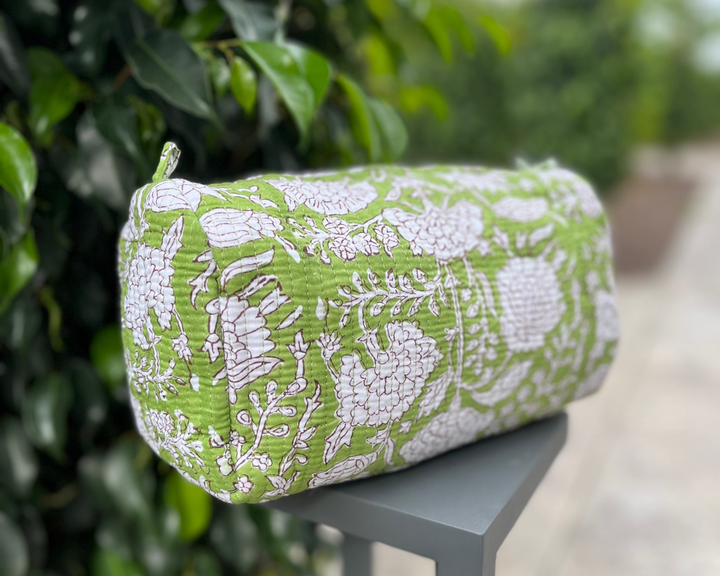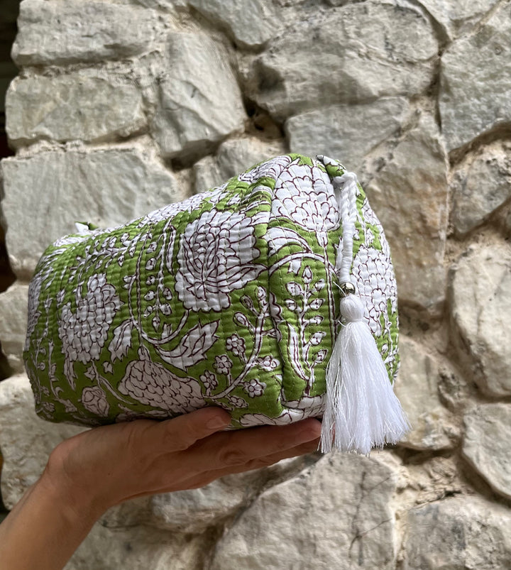 Meet our handcrafted, block-printed cosmetic wash bag pouch—your new everyday essential!